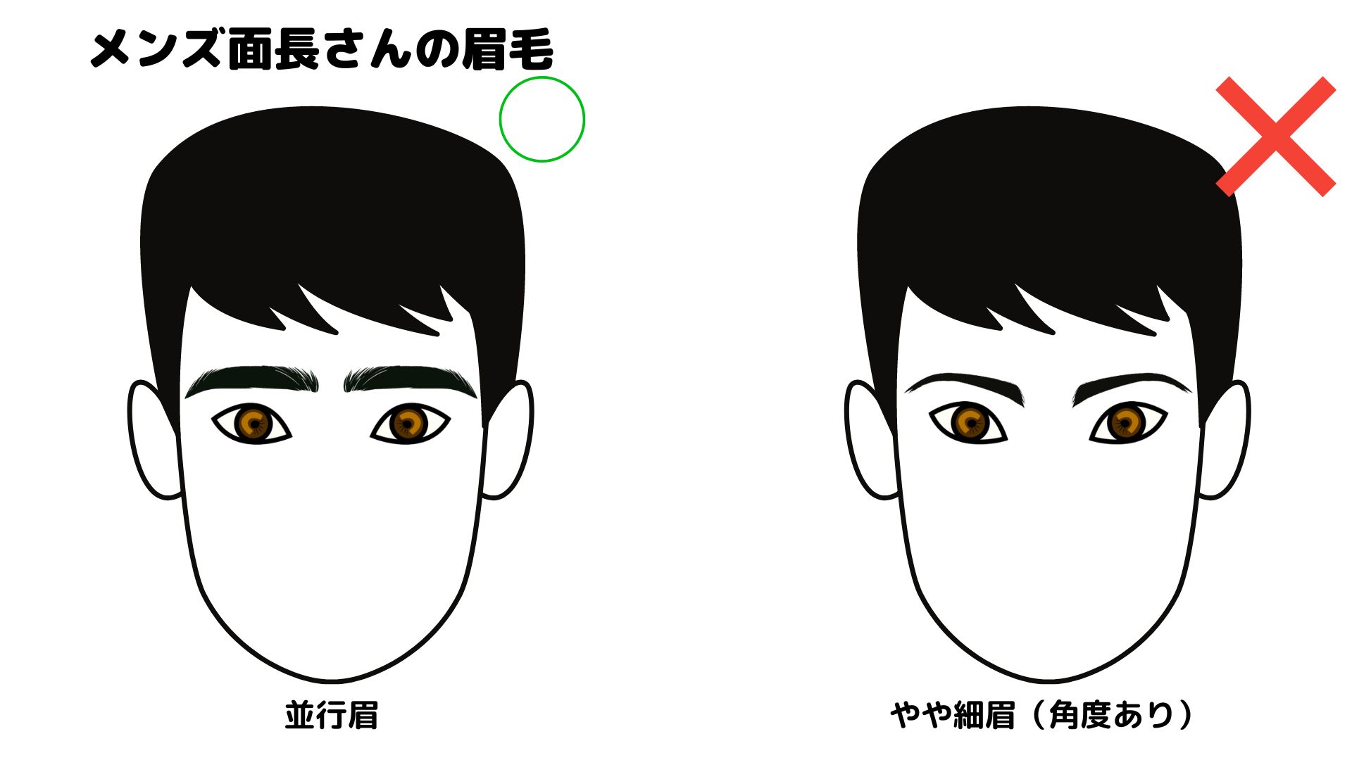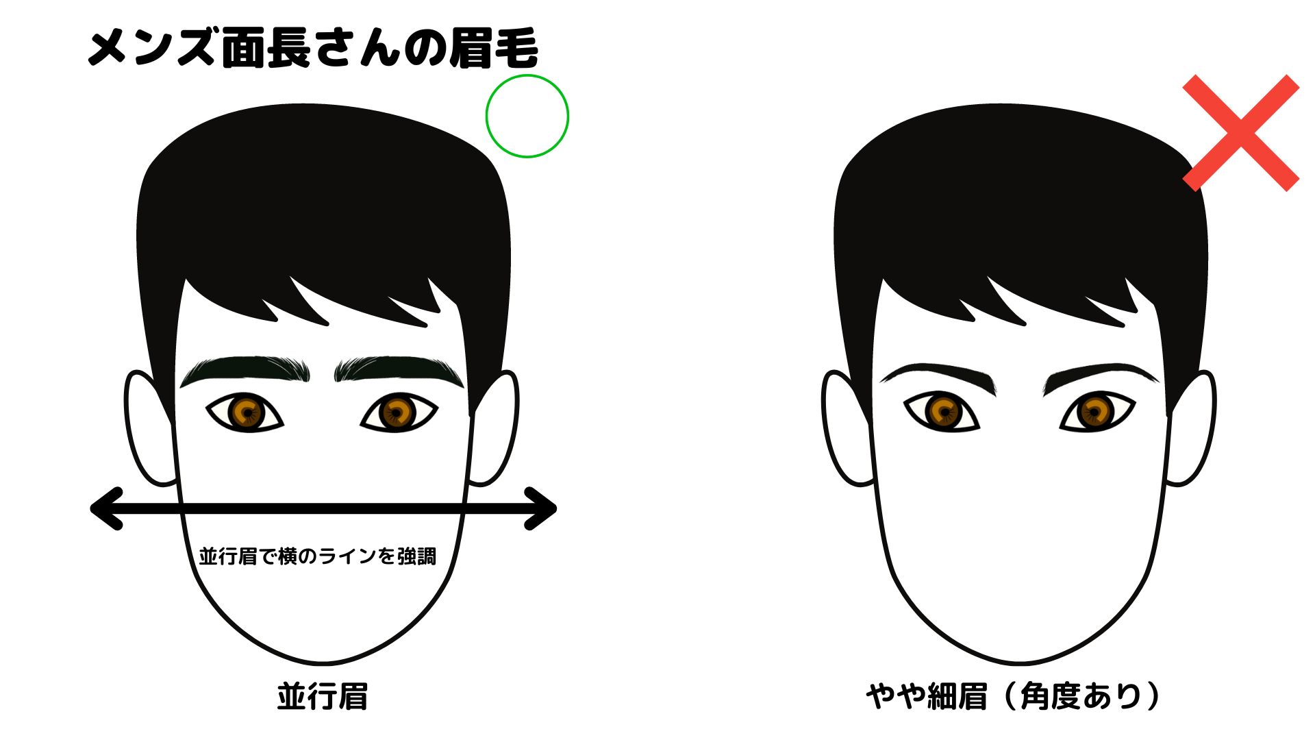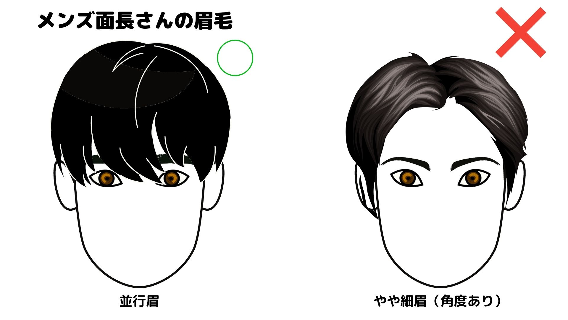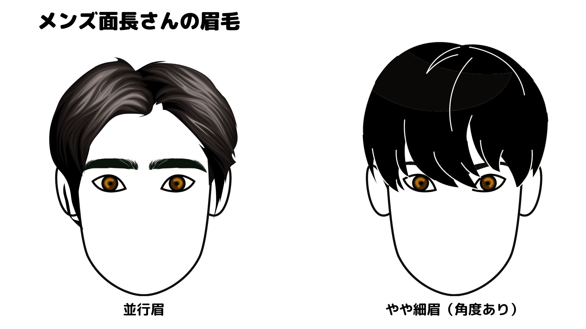 メンズで面長な人の眉毛が似合う種類は、『並行まゆ』『太め』が似合います。