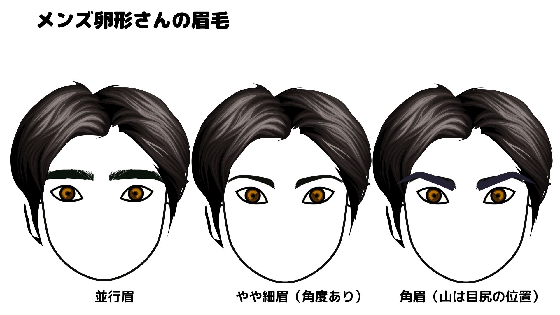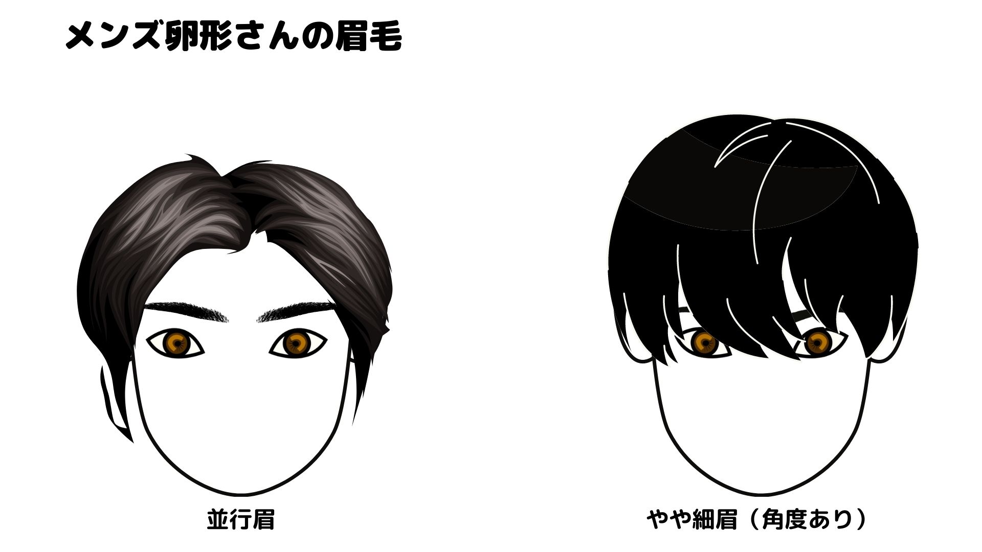 輪郭が卵形のメンズさんに似合う眉毛の種類は、『角度のある直線眉』が似合います。
