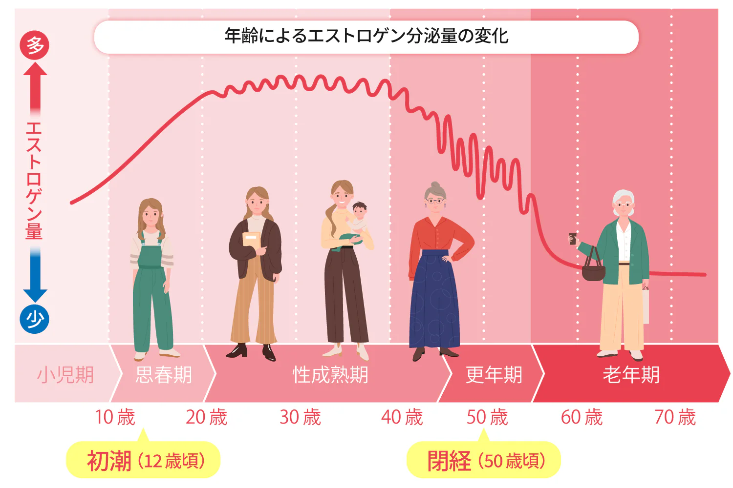 プロゲステロンの減少は、更年期に特に顕著で、ストレスや不規則な生活習慣が影響するとも言われています。