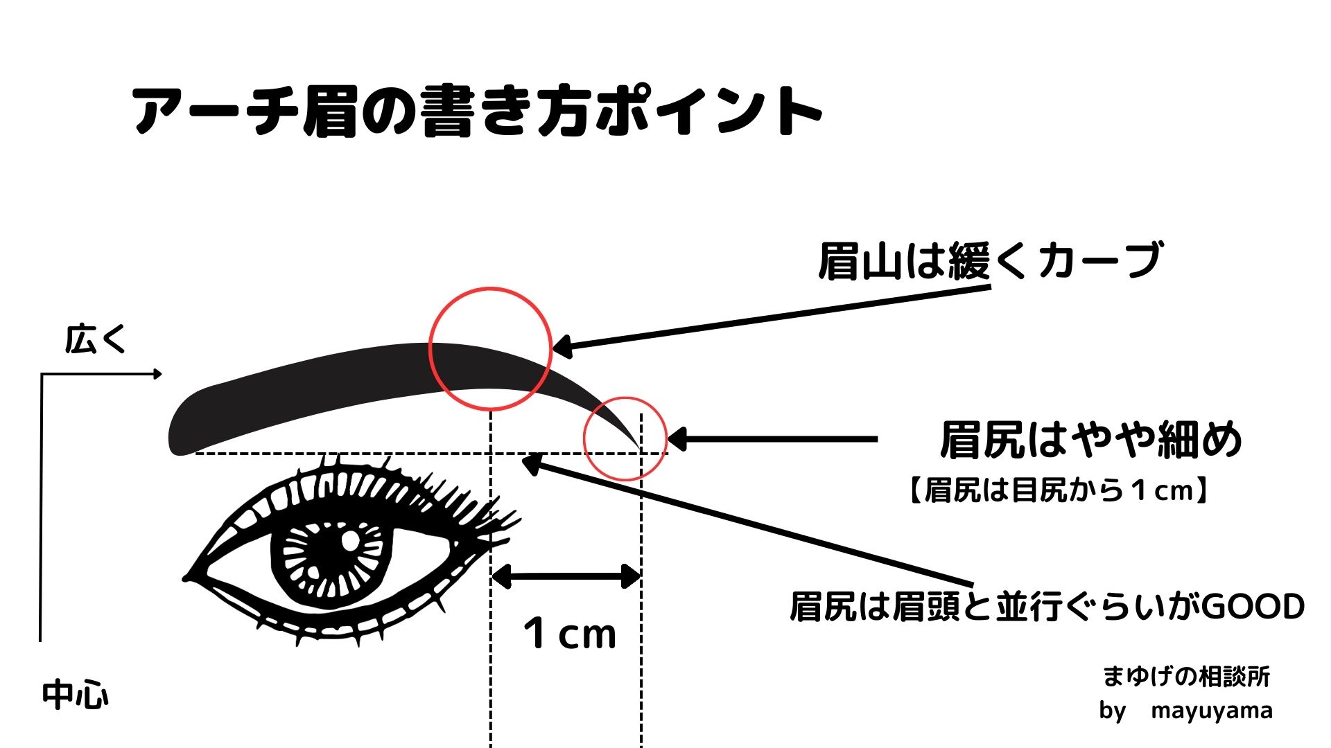 はじめにお伝えしたようにアーチ眉のポイントは眉頭と眉尻の位置関係になります。