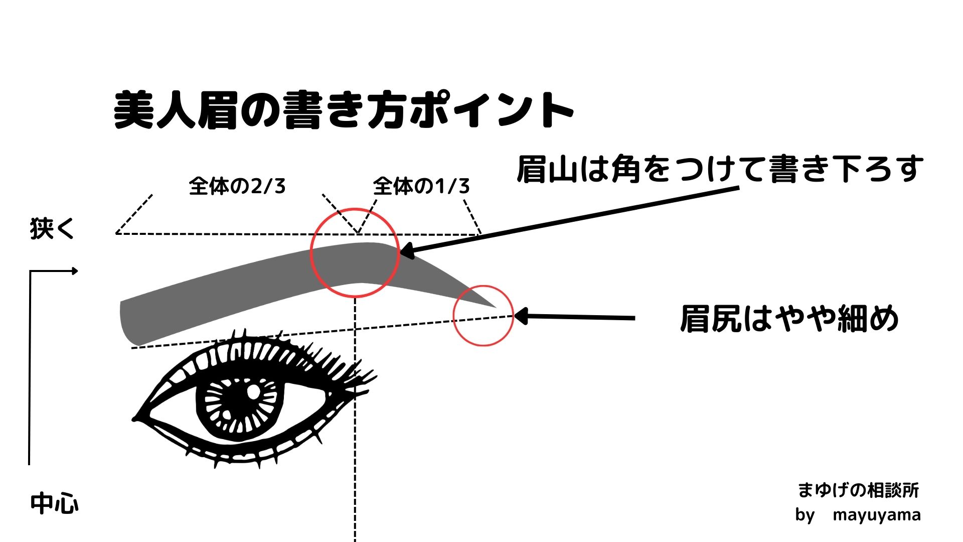 注意点としては、先にも伝えたように、眉山を外側に作ると、やや男性っぽい印象を与えることになります。